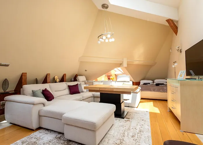 This 1-bedroom apartment is only 1.8 km from the 16th-century spa complex "Rudas Baths" and 2.2 km from the grotto chapel "Gellert Hill". While exploring Budapest, guests can conveniently reach the twin-towered Szechenyi Chain Bridge, which is 550 metres away. The spacious Anna Penthouse Apartment is about 10 minutes by car from the City Park.